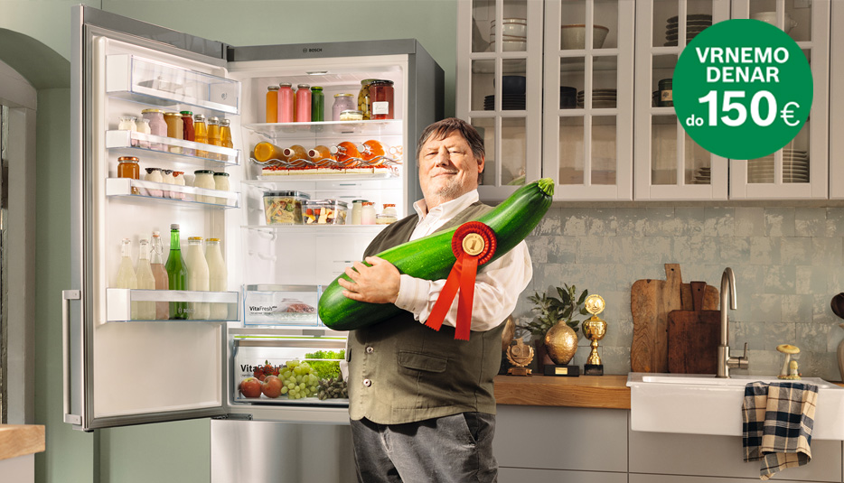 Če ste ali boste med 16 4. in 15. 9. 2023 kupili Bosch XXL hladilnik z zamrzovalnikom vam vrnemo 70, 100 ali 150 EUR.