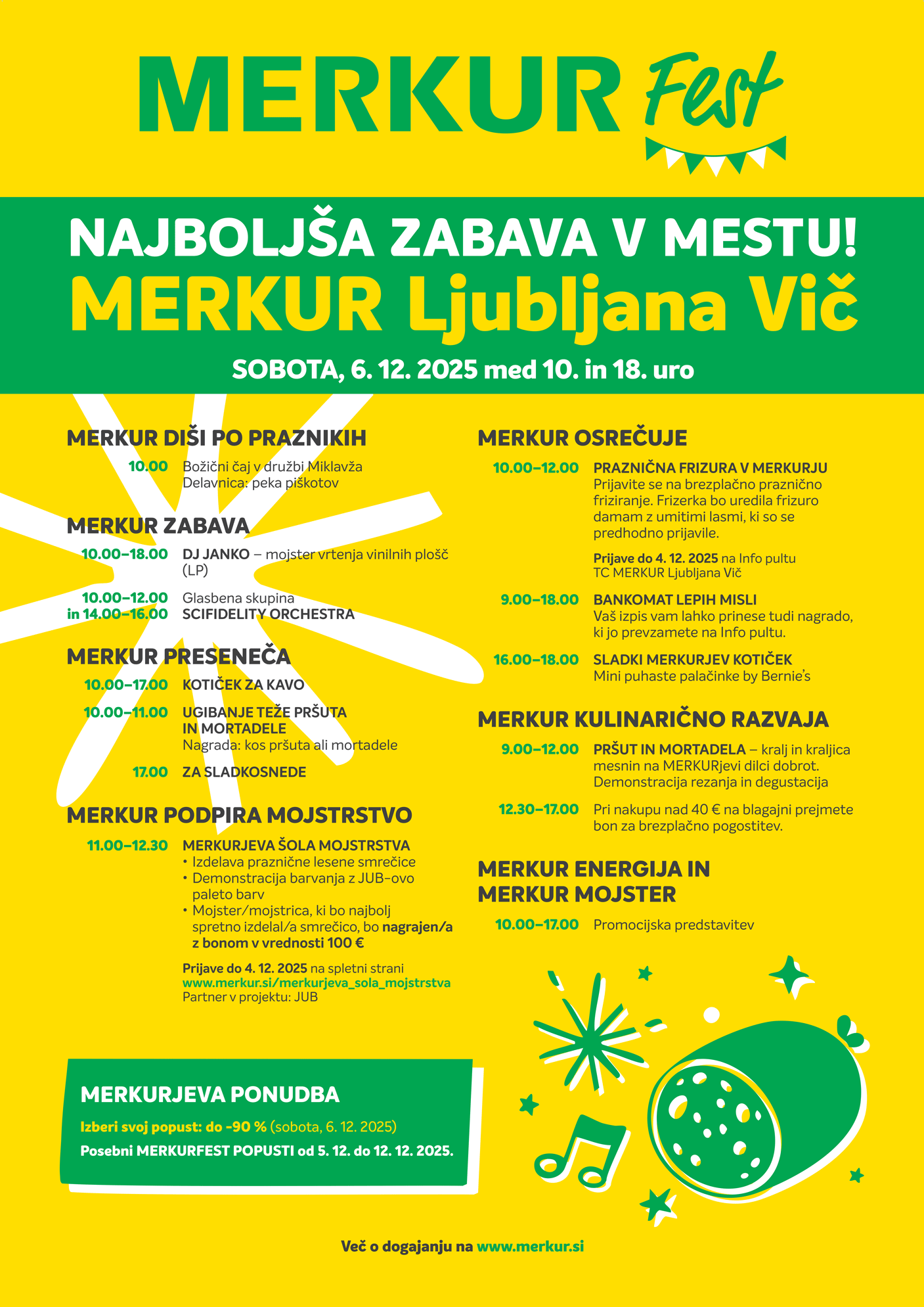 Obveščamo vas, da bodo naši trgovski centri v sredo, 24. 12., in sredo, 31. 12. 2025, odprti do 17:00. Trgovski centri MERKUR Mojster Naklo, MERKUR Mojster Maribor in MERKUR Mojster Nova Gorica bodo sredo, 31. 12. 2025, odprti do 13:00.