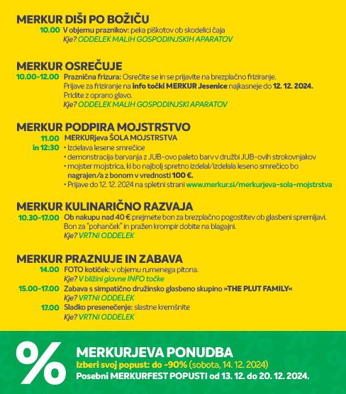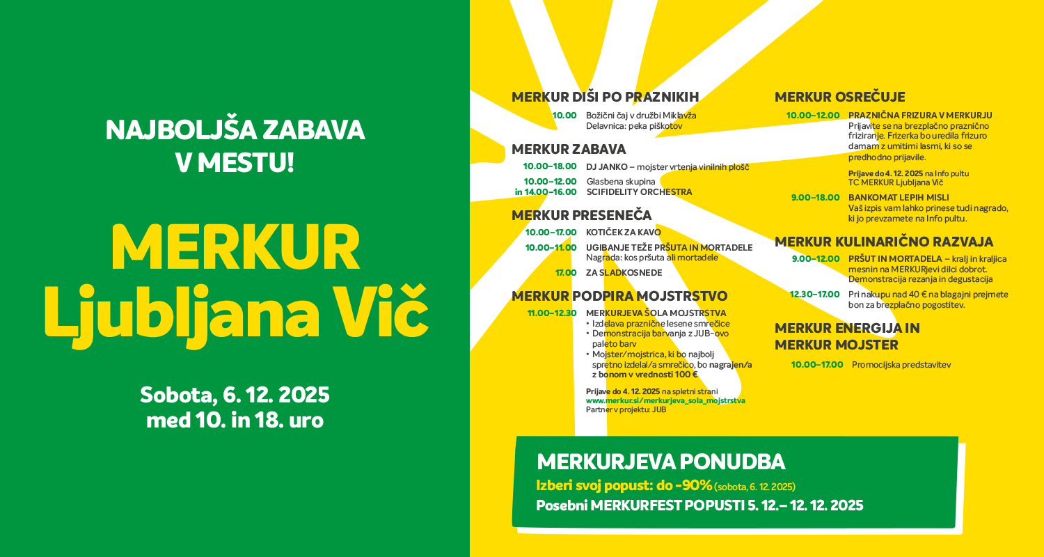 Sobota, 6. 12. 2025 med 10. in 18. uro MERKUR Ljubljana Vič