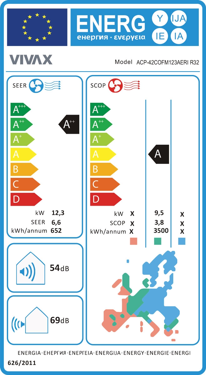 - Razred energetske učinkovitosti (hlajenje / ogrevanje): A++/A