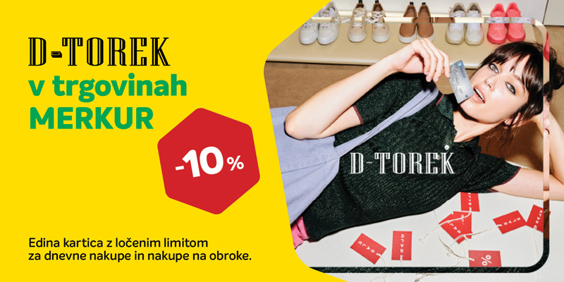 V trgovinah MERKUR si lahko vsak drugi in četrti torek v mesecu ob plačilu s kartico Diners Club zagotovite 10% popust na izbran izdelek*.