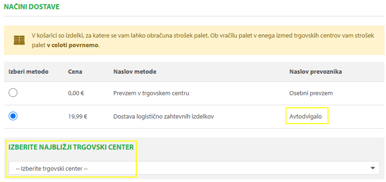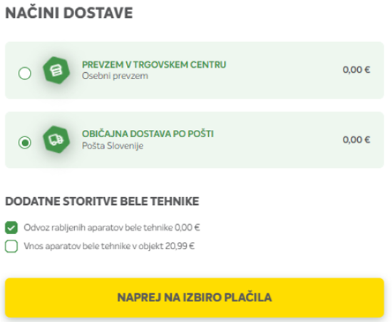 • Izberite način dostave. Izbrano blago vam dostavimo z načini dostave določenimi v Splošnih pogojih poslovanja