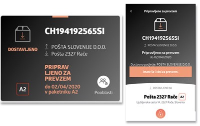 • Brezplačen klic pred dostavo s strani Pošte Slovenije.