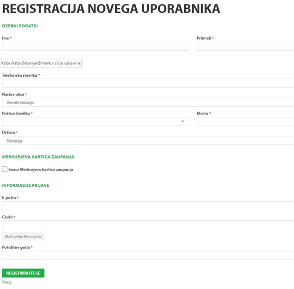 Odpre se vam okno za registracijo, kjer izpolnete vaše podatke, si nastavite geslo ter na koncu kliknete gumb »REGISTRIRAJTE SE«