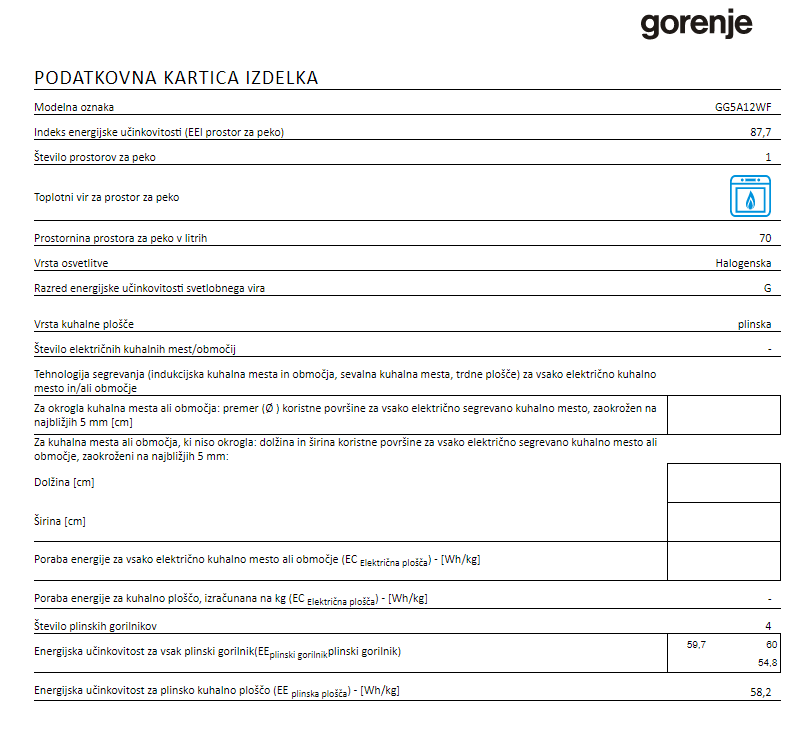 PLINSKI ŠTEDILNIK GORENJE GG5A12WF