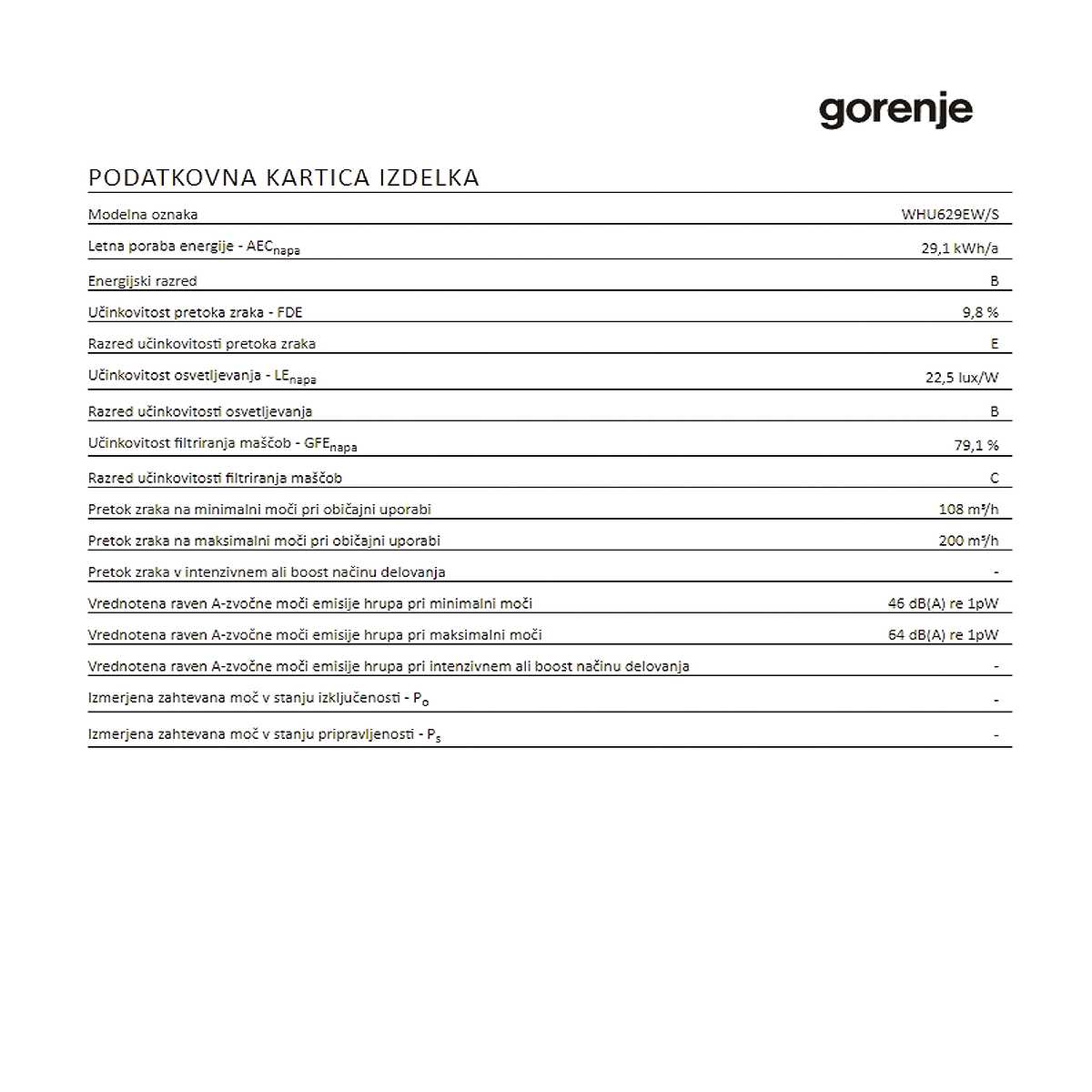 PODVGRADNA KUHINJSKA NAPA GORENJE WHU629EW/S