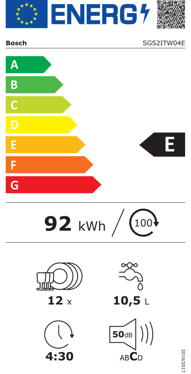 Blagovna znamka BOSCH VRSTA POMIVALNEGA STROJA PROSTOSTOJEČI ŠTEVILO POGRINJKOV 12 ŠIRINA 60 CM PORABA ENERGIJE NA 100 CIKLOV 92 KWH VIŠINA 84,5 CM ŠTEVILO PROGRAMOV 4 GLOBINA 60 CM PORABA VODE NA CIKEL 10,5 L ZAŠČITA PRED IZLIVOM VODE AQUA STOP Z GARANCIJO INVERTER MOTOR NE ZAMIK VKLOPA DA ŠTEVILO TEMPERATUR 4 POVEZLJIVOST WI-FI NE ENERGIJSKI RAZRED E TRAJANJE PROGRAMA ECO 4:30 H : MIN ŠIRINA POMIVALNEGA STROJA 60 CM EMISIJA HRUPA 50 DB RAZRED EMISIJE HRUPA C GARANCIJA V LETIH 2 LETI - Mnenja