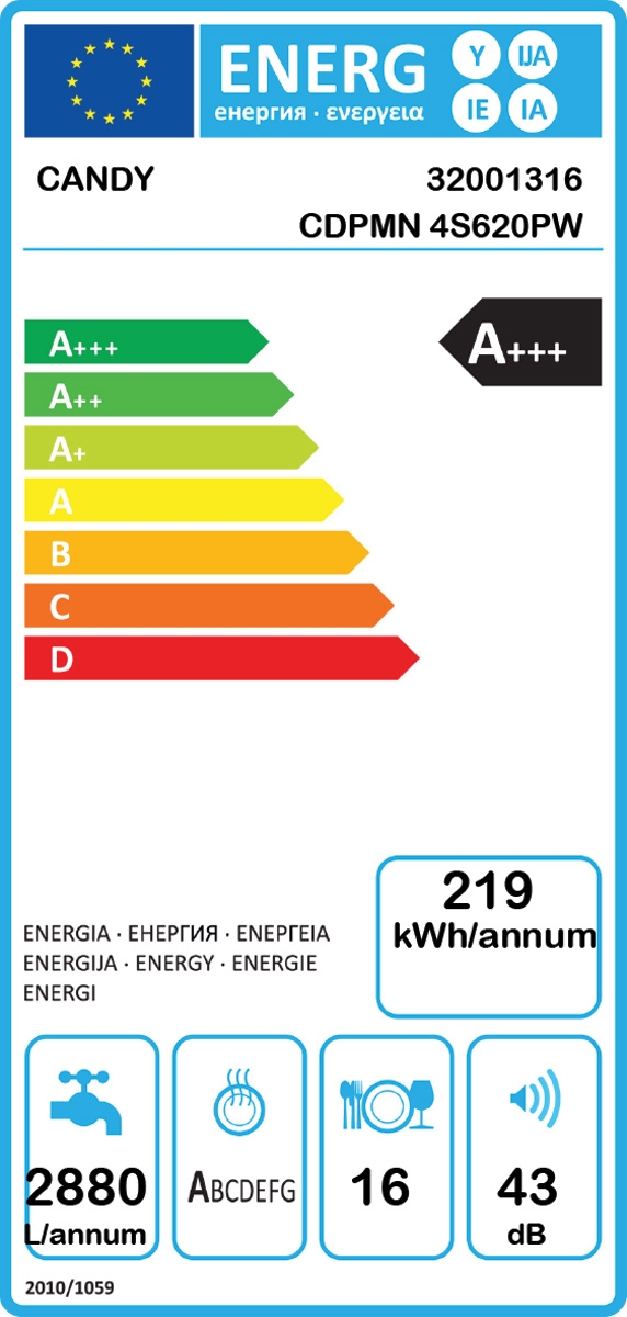 Candy prostostoječi pomivalni stroj CDPMN 4S 620 PW v beli barvi z zmogljivostjo 16 pogrinjkov ter glasnostjo 41 decibelov in zaslonom na dotik. Poleg 12 različnih programov, ima pomivalni stroj tudi možnost dodatnega upravljanja preko aplikacije za pametne telefone. Pomivalni stroj je opremljen z opcijo za samodejno odpiranje vrat (10 cm) po koncu programa, za varnost pred izlitjem vode skrbi zaščita Aquaprotect, posebnost pa sta še t.i. ?Zoom? program, ki posodo opere in posuši v 39 min, ter opcija dodajanja posode v pomivalni stroj še 30 min po začetku cikla.