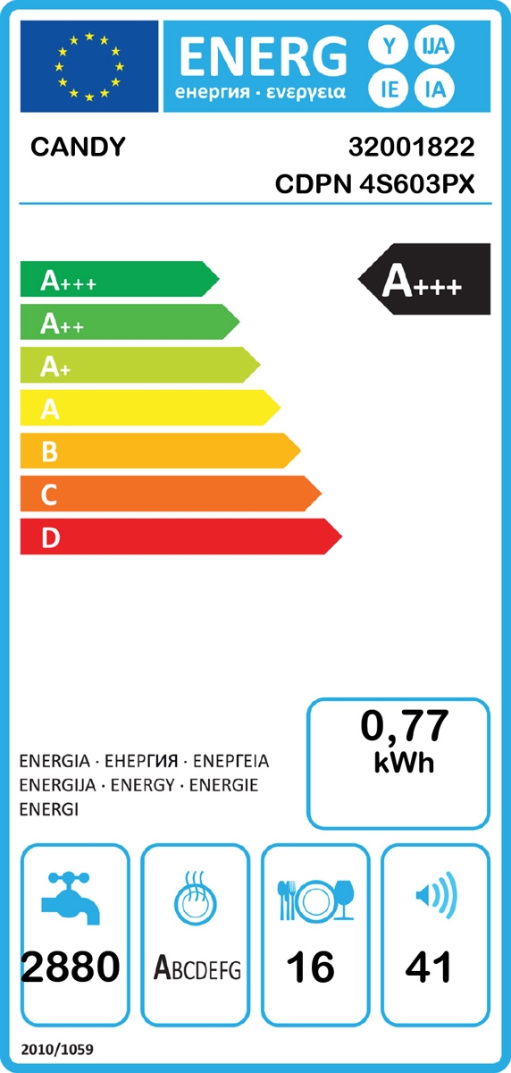 Candy prostostoječi pomivalni stroj z zaslonom na dotik. Poleg 12 različnih programov, ima pomivalni stroj tudi možnost dodatnega upravljanja preko aplikacije za pametne telefone. Pomivalni stroj je opremljen z opcijo za samodejno odpiranje vrat (10cm) po koncu programa, Perfect Rapid cono in tretjo košaro, posebnost pa sta še t.i. ?Zoom? program, ki posodo opere in posuši v 39 min, ter opcija dodajanja posode v pomivalni stroj še 30 min po začetku cikla. Za varnost pred izlitjem vode skrbi zaščita Aquastop.