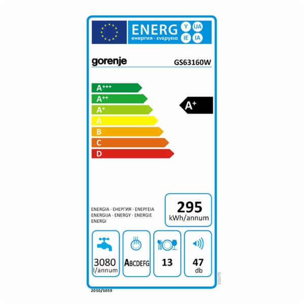 Prostostoječi pomivalni stroj slovenskega proizvajalca Gorenje odlikuje možnost pomivanja do 13 standardnih pogrinjkov. V sam vrh ga uvršča popolni AquaStop za popolnoma varno uporabo aparata, samočistilni filter in možnost nastavitve za polovično zmanjšanje trajanja programa. Za popolnoma čisto posodo poskrbijo štirje nivoji brizganja in dve brizgalni ročici. Enostavno upravljanje aparata poteka preko gumbov, izbira med programi pa je vidna preko svetlobnih indikatorjev in ima možnost zakasnitve začetka pomivanja do 24 ur. Kljub povišani moči delovanja aparata, ta ne oddaja veliko hrupa.