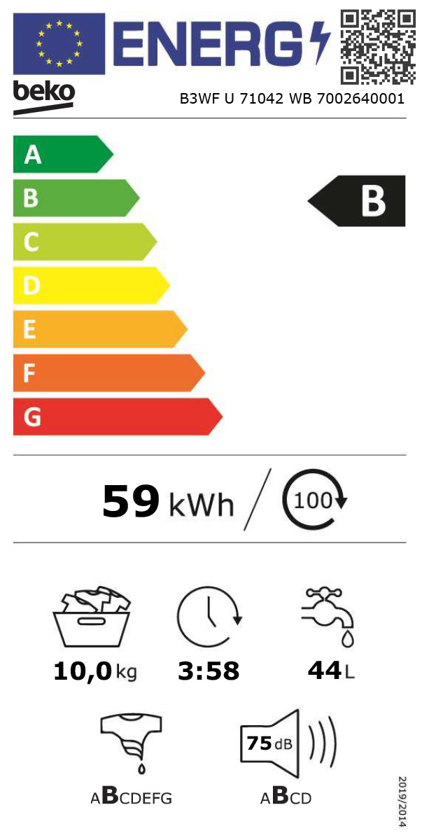 Beko B3WFU71042WB je pralni stroj za velike družine, saj s kapaciteto 10 kg lahko opere zares veliko perila naenkrat. Ta varčen pralni stroj se umešča v energijski razred B, saj ima ProSmart inverter motor, ki poskrbi za tišje, varčnejše in vzdržljivejše delovanje.