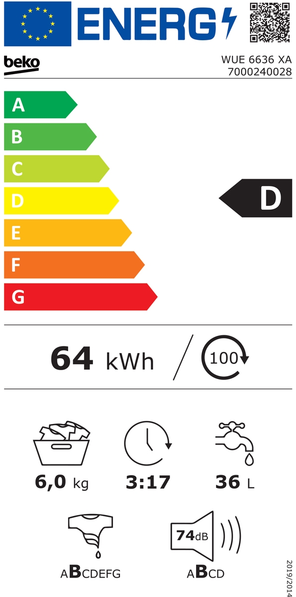 Blagovna znamka BEKO ENERGIJSKI RAZRED D ZMOGLJIVOST PRANJA 6 KG VRSTA PRALNEGA STROJA POLNJENJE SPREDAJ UPRAVLJANJE ELEKTRONSKO PORABA EL. ENERGIJE 100 CIKLOV 64 KWH PORABA VODE NA CIKEL 36 L ENERGIJSKI RAZRED OŽEMANJE B ŠIRINA 60 CM GLOBINA 44 CM HITROST OŽEMANJA DO 1200 O/MIN INVERTER MOTOR DA PARNA TEHNOLOGIJA DA RAZRED EMISIJE HRUPA B ZAMIK VKLOPA DA AQUASTOP TEHNOLOGIJA NE EMISIJA HRUPA - OŽEMANJE 74 DB POVEZLJIVOST WI-FI NE TRAJANJE PROGRAMA ECO 40-60 3:17 H : MIN GLOBINA DO 50 CM DA PRIMEREN ZA ALERGIKE DA VIŠINA 84 CM GARANCIJA V LETIH 2 LETI Mnenja