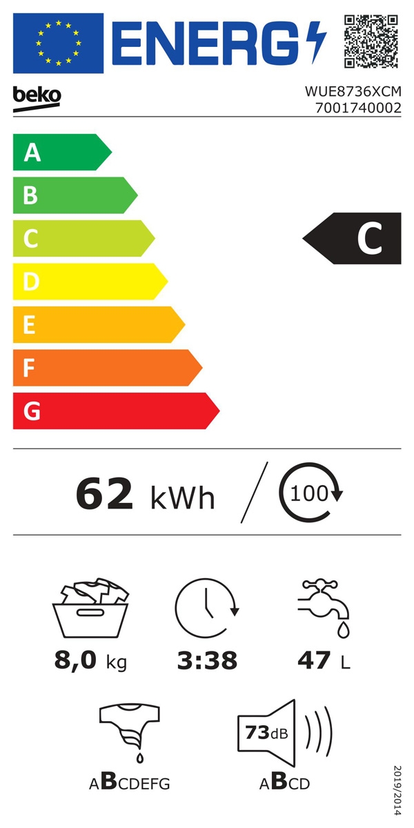 Blagovna znamka BEKO ENERGIJSKI RAZRED C ZMOGLJIVOST PRANJA 8 KG VRSTA PRALNEGA STROJA POLNJENJE SPREDAJ UPRAVLJANJE ELEKTRONSKO PORABA EL. ENERGIJE 100 CIKLOV 62 KWH PORABA VODE NA CIKEL 47 L ENERGIJSKI RAZRED OŽEMANJE B ŠIRINA 60 CM GLOBINA 55 CM HITROST OŽEMANJA DO 1400 O/MIN INVERTER MOTOR DA BARVA TEMNO SIVA PARNA TEHNOLOGIJA DA RAZRED EMISIJE HRUPA B ZAMIK VKLOPA DA AQUASTOP TEHNOLOGIJA NE EMISIJA HRUPA - OŽEMANJE 73 DB POVEZLJIVOST WI-FI DA TRAJANJE PROGRAMA ECO 40-60 3:38 H : MIN GLOBINA DO 50 CM NE PRIMEREN ZA ALERGIKE DA VIŠINA 85 CM GARANCIJA V LETIH 2 LETI Mnenja