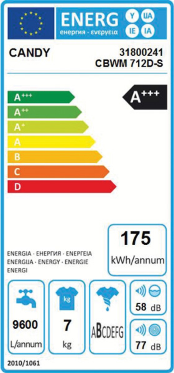 Candy vgradni pralni stroj CBWM 712 D z zmogljivostjo pranja 7 kg in 1200 obrati na minuto pri ožemanju. Pralni stroj se uvršča v A+++ energijski razred z glasnostjo 58 dB med pranjem in 77 dB med ožemanjem. Opremljen je z napredno funkcijo KG detektor, ki oceni količino perila ter prilagodi čas pranja in porabo vode ter energije. Za manjše količine pranja imate na voljo tudi kratki 14, 30 in 44 minutni program.