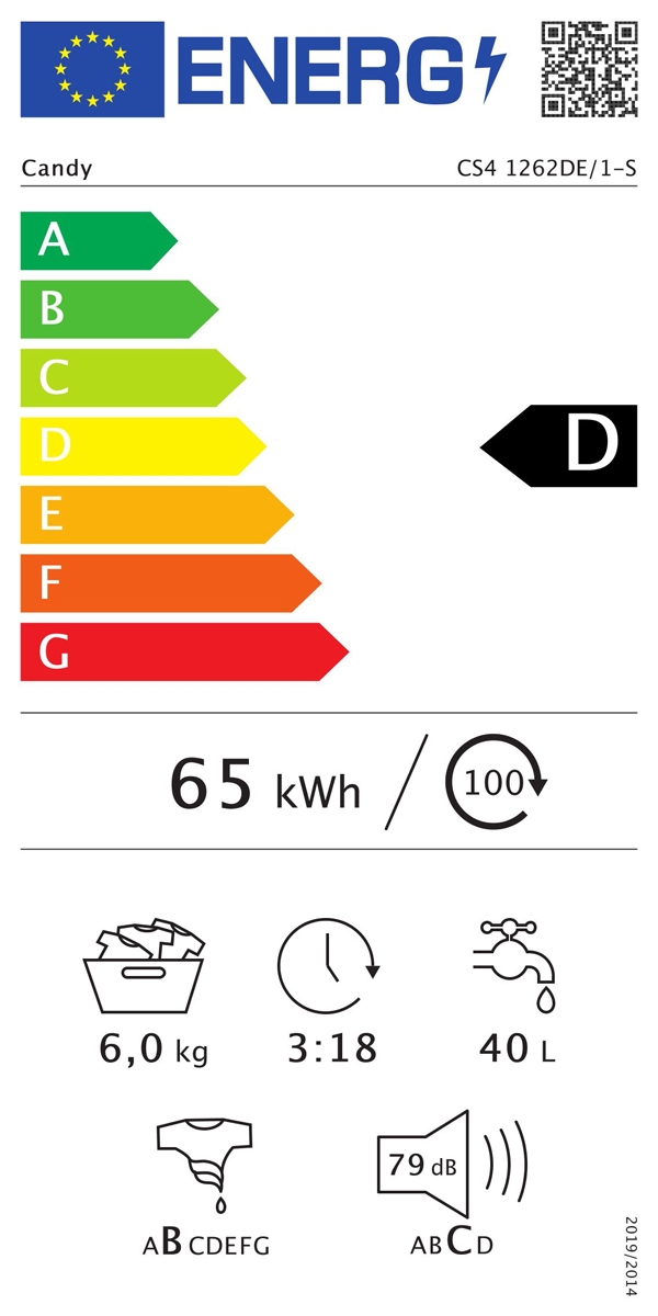 Blagovna znamka CANDY VRSTA PRALNEGA STROJA POLNJENJE SPREDAJ ZMOGLJIVOST PRANJA 6 KG UPRAVLJANJE ELEKTRONSKO ENERGIJSKI RAZRED OŽEMANJE B PORABA EL. ENERGIJE 100 CIKLOV 65 KWH ŠIRINA 60 CM PORABA VODE NA CIKEL 40 L VIŠINA 85 CM GLOBINA 45 CM HITROST OŽEMANJA DO 1200 O/MIN POVEZLJIVOST WI-FI DA INVERTER MOTOR NE ZAMIK VKLOPA DA ENERGIJSKI RAZRED D PARNA TEHNOLOGIJA NE EMISIJA HRUPA - OŽEMANJE 79 DB RAZRED EMISIJE HRUPA C GLOBINA DO 50 CM DA TRAJANJE PROGRAMA ECO 40-60 3:18 H : MIN PRIMEREN ZA ALERGIKE NE AQUASTOP TEHNOLOGIJA NE GARANCIJA V LETIH 2 LETI -