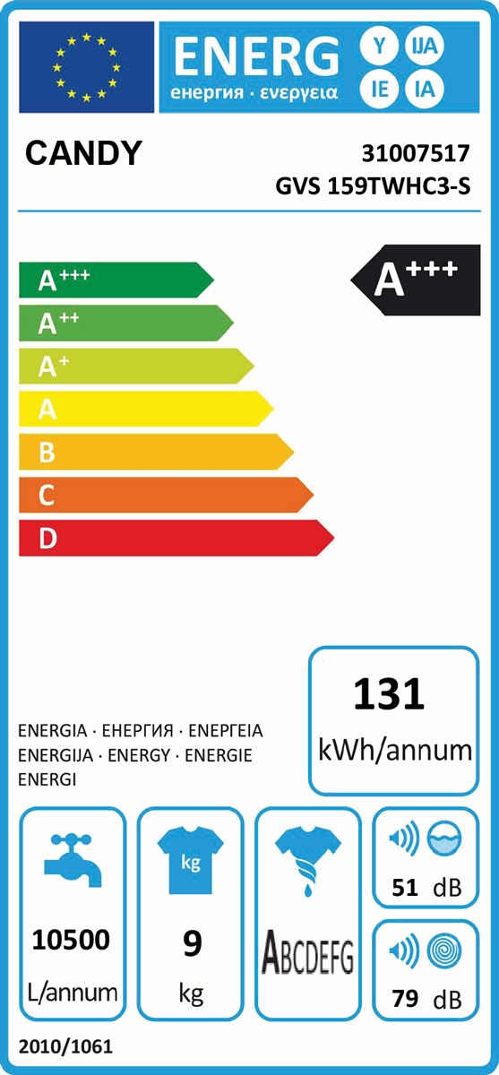 Candy pralni stroj GVS 159 TWHC3 z zmogljivostjo pranja 9 kg in 1500 obrati na minuto pri ožemanju. Opremljen je z napredno funkcijo KG detektor, ki oceni količino perila ter prilagodi čas pranja in porabo vode ter energije. Za manjše količine pranja pa ima tudi kratki 14, 30 in 44 minutni program. Poleg klasičnega upravljanja ima stroj na voljo tudi možnost dodatnega upravljanja s pametnim telefonom preko NFC sistema.