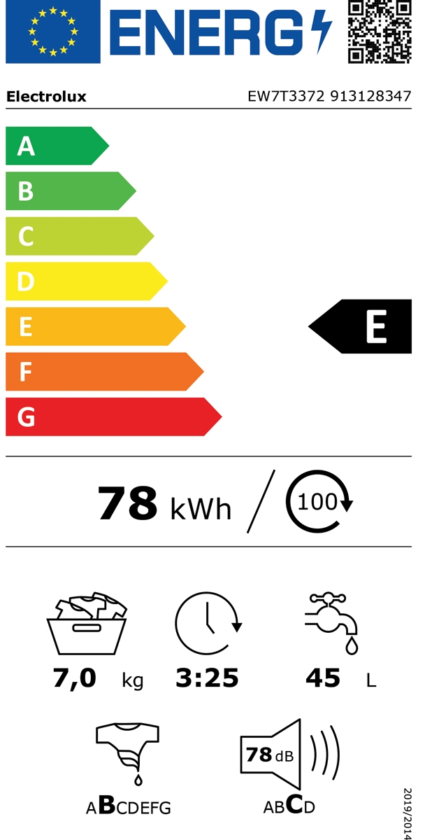 Blagovna znamka ELECTROLUX ENERGIJSKI RAZRED E ZMOGLJIVOST PRANJA 7 KG VRSTA PRALNEGA STROJA POLNJENJE ZGORAJ UPRAVLJANJE ELEKTRONSKO PORABA EL. ENERGIJE 100 CIKLOV 78 KWH PORABA VODE NA CIKEL 45 L ENERGIJSKI RAZRED OŽEMANJE B ŠIRINA 40 CM GLOBINA 60 CM HITROST OŽEMANJA DO 1300 O/MIN INVERTER MOTOR DA PARNA TEHNOLOGIJA DA RAZRED EMISIJE HRUPA C ZAMIK VKLOPA DA AQUASTOP TEHNOLOGIJA NE EMISIJA HRUPA - OŽEMANJE 78 DB POVEZLJIVOST WI-FI NE TRAJANJE PROGRAMA ECO 40-60 3:25 H : MIN GLOBINA DO 50 CM NE PRIMEREN ZA ALERGIKE DA VIŠINA 89 CM GARANCIJA V LETIH 2 LETI Mnenja