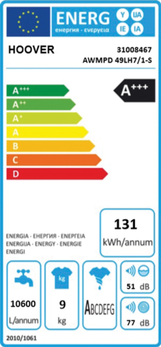 Najnovejši Hoover pralni stroj ima zmogljivost pranja 9 kg, 1400 obratov pri ožemanju in se uvršča v A+++ energijski razred z dodatno, manjšo porabo. Poleg klasičnega ima tudi možnost dodatnega upravljanja preko pametnega telefona z WiFi sistemom. Stroj ima avtomatski sistem doziranja detergenta in mehčalca za do 21 pranj. Opremljen je z napredno funkcijo KG detektor, ki oceni količino perila ter prilagodi čas pranja in porabo.