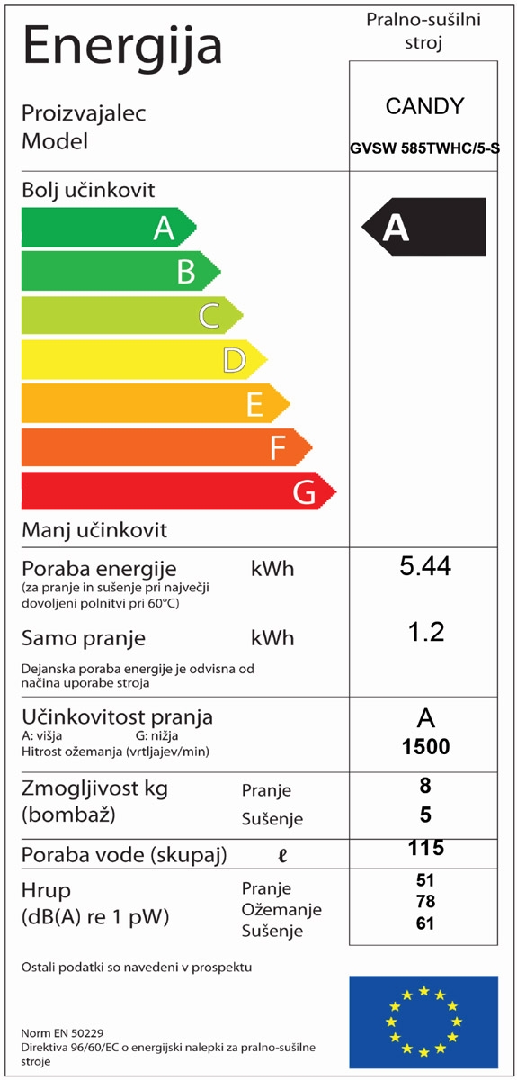 PRALNO-SUŠILNI STROJ CANDY GVSW 585 TWHC/5