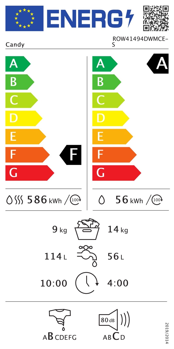 Visoko zmogljiv pralno sušilni stroj Candy RapidO ROW41494DWMCE-S omogoča pranje in sušenje večjih količin perila, njegova zmogljivost pranja je 14kg, zmogljivost sušenja pa 9kg. Na voljo ima 14 programov pranja, od tega je kar 7 hitrih in 3 programe sušenja. Programom pranja lahko dodate funkcijo pare, ki osveži perilo, odstrani neprijetne vonjave in olajša likanje.