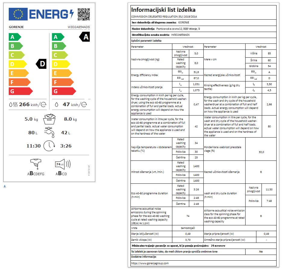 PRALNO-SUŠILNI STROJ GORENJE W3D2A854ADS