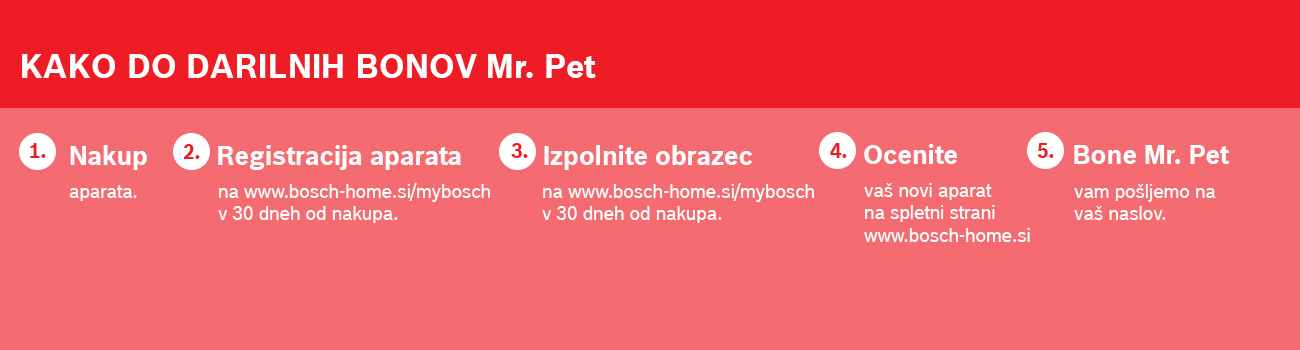 Registracija aparata in prijava za prejem darilnih bonov na www.bosch-home.si /mybosch v roku 30 dni od nakupa.