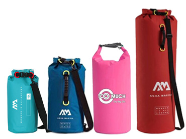 Vodoodbojne torbe so na razpolago v več barvah in različni litraži ter služijo predvsem za nemoteno uživanje na vodi, tudi če se odpravite na daljšo pot in imate s seboj stvari, ki niso vodoodporne oziroma ne želite da se zmočijo (telefon, denarnica, brisača, rezervna oblačila,...).