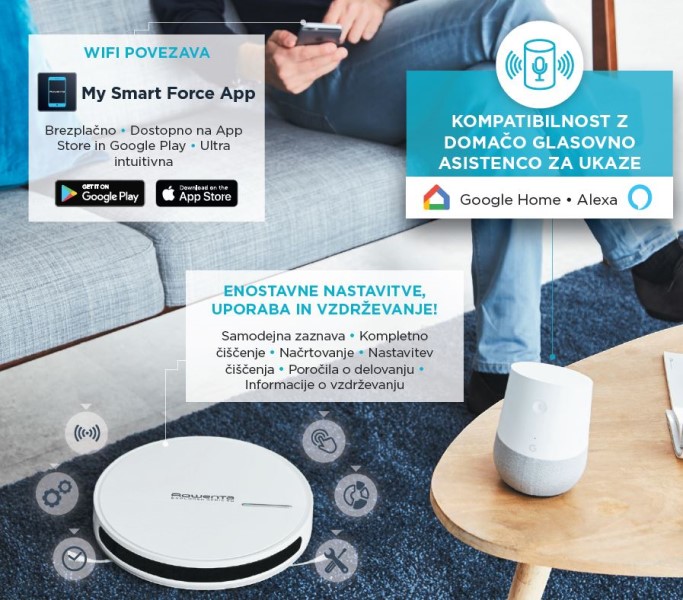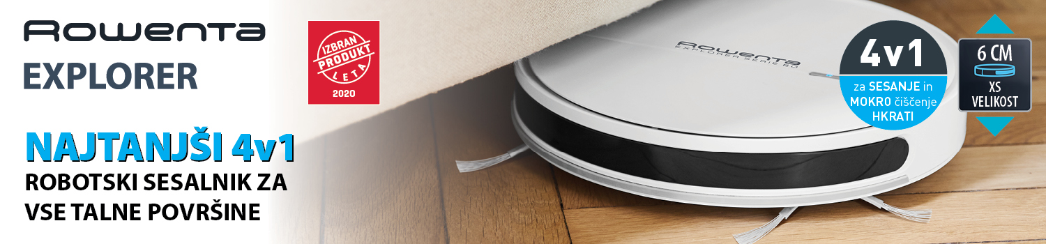 Z novim robotskim sesalnikom Rowenta Explorer 60 RR7447WH do popolnega čiščenja vseh vrst tal in preprog, živalske dlake in alergenov v vašem domu.