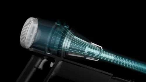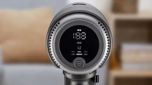 Delovanje sesalnika boste lahko kontrolirali preko inteligentnega LED prikazovalnika, ki prikazuje trenutno stanje napolnjenosti baterije, hitrost delovanja (nizka, srednja ali visoka) in vas opomni, če je potrebno očistiti sesalno cev ali izprazniti posodo za prah. Ko se baterija polni, prikazuje tudi polnjenje. Pomembno pa je, da sesalnik z izpraznjenostjo baterije ne izgublja sesalne moči.