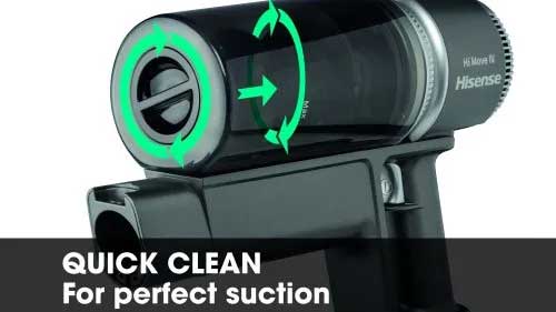 V več kot eni točki, so Hisensovi pokončni sesalniki oblikovani tako, da so izjemno lahko vodljivi. Pri sesanju držite najtežji del sesalnika v vaših rokah in imate zato popolno kontrolo nad gibi. Zglob med sesalno cevjo in krtačo je super fleksibilen in skupaj z majhnimi kolesi omogoča učinkovito sesanje tudi pod zelo nizkim pohištvom.