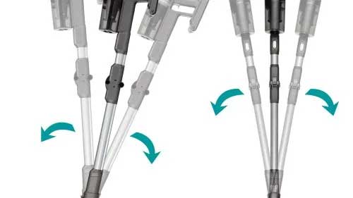 Uživajte v vseh prednostih pokončnega sesalnika, ki ga lahko v nekaj trenutkih spremenite v ročnega. S kombinacijo obeh dodanih nastavkov - male krtače in ozkega nastavka - na ročnem delu ali na dolgi sesalni cevi, boste kos vsem opravilom.