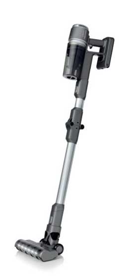 Brezžično delovanje. 25,2 V Li-Ion Baterija. Nivo hrupa: 78 dB. Prostornina posode za prah: 0,5 l. 2 hitrosti. S posodo za prah in pralnim filtrom. Motorizirana turbo krtača. Stenski nosilec. Odstranljiva baterija.Oprema: Turbo nastavek za tekstil, gibljiva cev, nastavek s ščetinami, ozek nastavek.