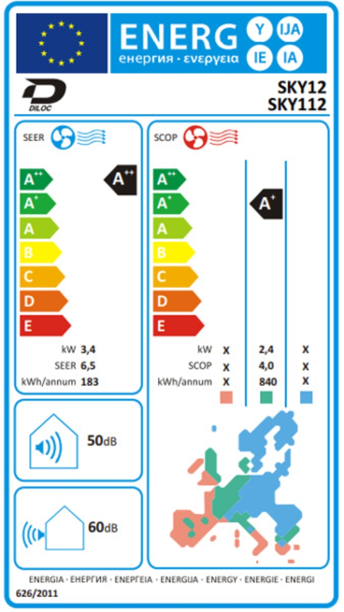 SPLIT ENOJNA INVERTER DILOC SKY 12 3.4KW, NOTR+ZUN ENOTA