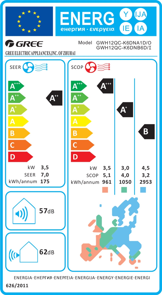 SPLIT ENOJNA INVERTER GREE GWH12QC LOMO 3.5KW, NOTR+ZUN ENOTA