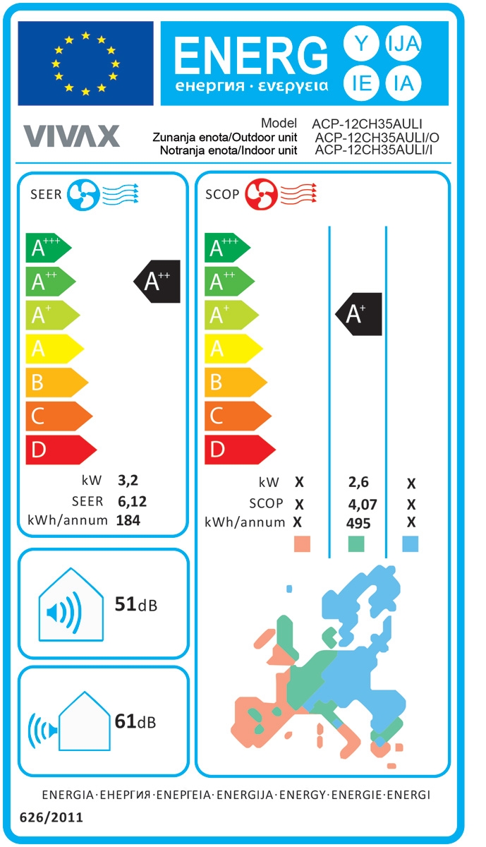 SPLIT ENOJNA INVERTER VIVAX ACP-12CH35AULI R32 3.5KW, NOTR+ZUN ENOTA