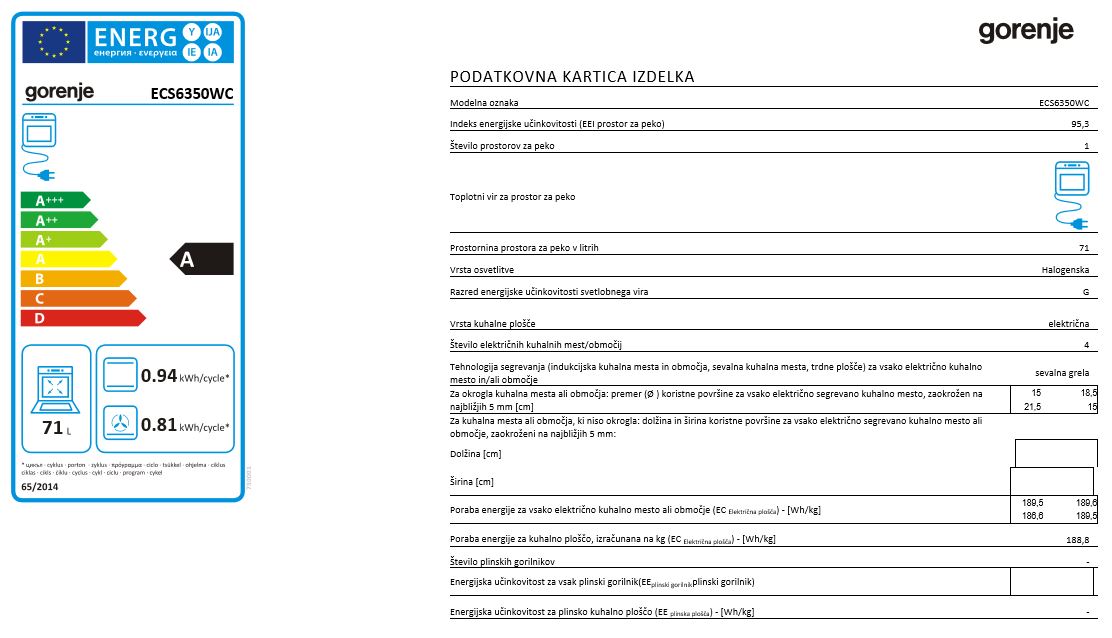 Blagovna znamka GORENJE VRSTA KUHALIŠČA STEKLOKERAMIKA BARVA BELA ŠIRINA 60 CM VRSTA PEČICE VEČSISTEMSKA VIŠINA 85 CM PROSTORNINA PEČICE 71 L GLOBINA 60 CM ZASTEKLITEV VRAT DVOJNA ENERGIJSKI RAZRED A GARANCIJA V LETIH 5 LET - Mnenja
