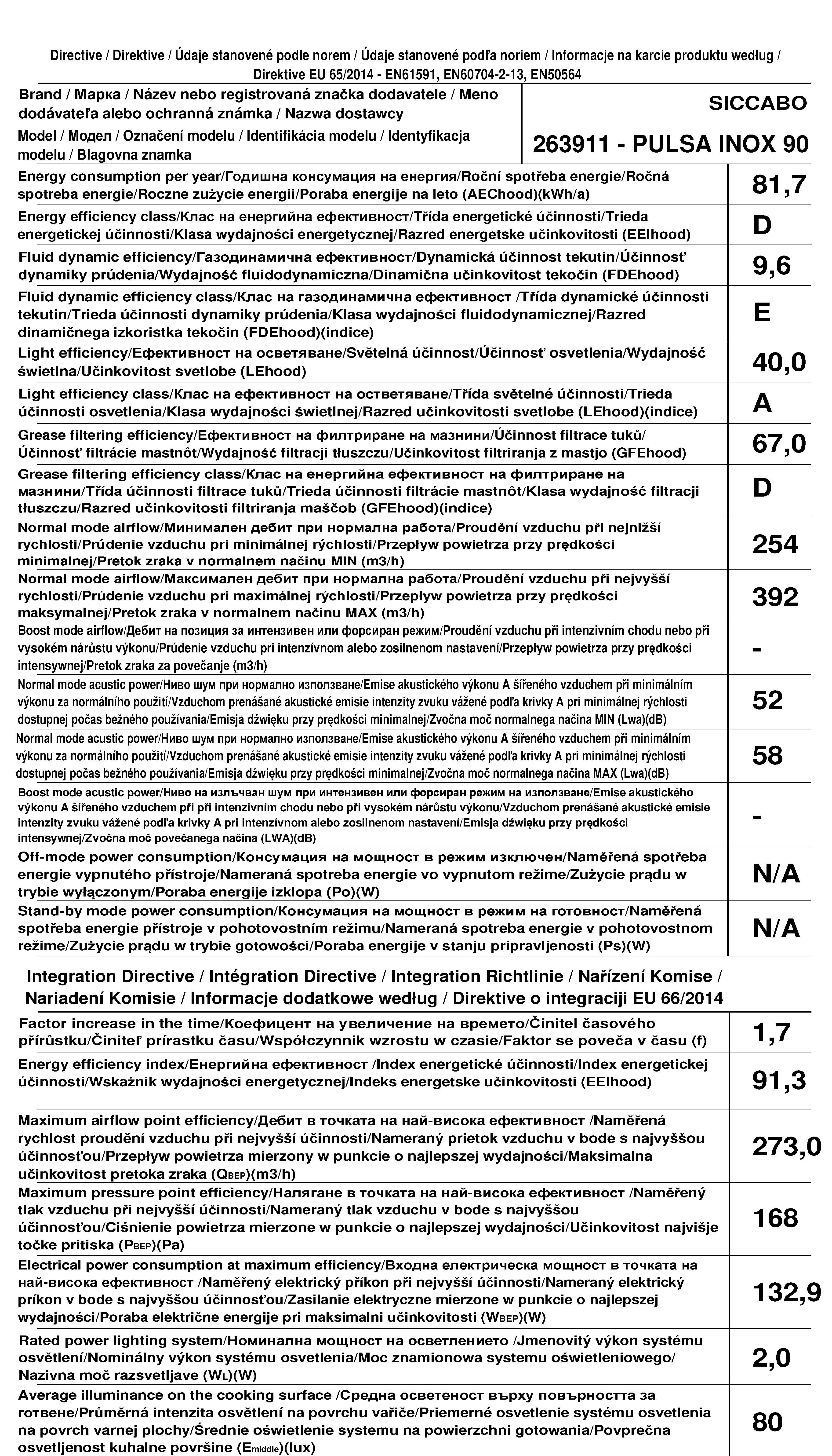 Blagovna znamka SICCABO BARVA INOX LETNA PORABA ENERGIJE 82 KWH ŠIRINA 90 CM RAZRED UČINKOV. PRETOKA ZRAKA E RAZRED UČINKOV. OSVETLJEVANJA A VRSTA NAPE STENSKA RAZRED UČINKOV. FILTR. MAŠČOB D GLASNOST DELOVANJA 58 DB UPRAVLJANJE Z GUMBI ENERGIJSKI RAZRED D GARANCIJA V LETIH 5 - Mnenja