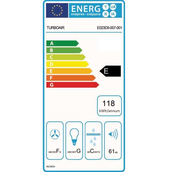 Kaminska kuhinjska napa Turboair za montažo na steno z mehanskim upravljanjem preko gumbov dosega maksimalen pretok zraka do 368 m3/h in ima možnost izbire med tremi stopnjami zmogljivosti. Odlikuje jo sodobno minimalistični dizajn, ki sovpada v vsako kuhinjsko pohištvo. Kljub večji zmogljivosti čiščenja zraka je zagotovljeno tiho delovanje, napa pa je nepogrešljiv aparat za ohranjanje svežega zraka v kuhinji. Poleg vzdrževanja optimalnega zraka je tudi dodaten vir osvetlitve kuhališča in delovne površine, za kar poskrbita dve 20 W halogenski žarnici. Kuhinjska napa sodi v energijski razred E.