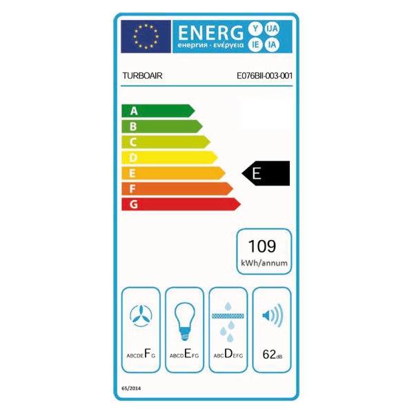 Kaminska kuhinjska napa Turboair za montažo na steno z mehanskim upravljanjem preko gumbov dosega maksimalen pretok zraka do 336 m3/h in ima možnost izbire med tremi stopnjami zmogljivosti. Odlikuje jo sodobno minimalistični dizajn, ki se nevtralno skrije v kuhinjsko pohištvo. Kljub večji zmogljivosti čiščenja zraka je zagotovljeno tiho delovanje, napa pa je nepogrešljiv aparat za ohranjanje svežega zraka v kuhinji. Poleg vzdrževanja optimalnega zraka je tudi dodaten vir osvetlitve kuhališča in delovne površine, za kar poskrbi halogenska žarnica. Kuhinjska napa sodi v energijski razred E.