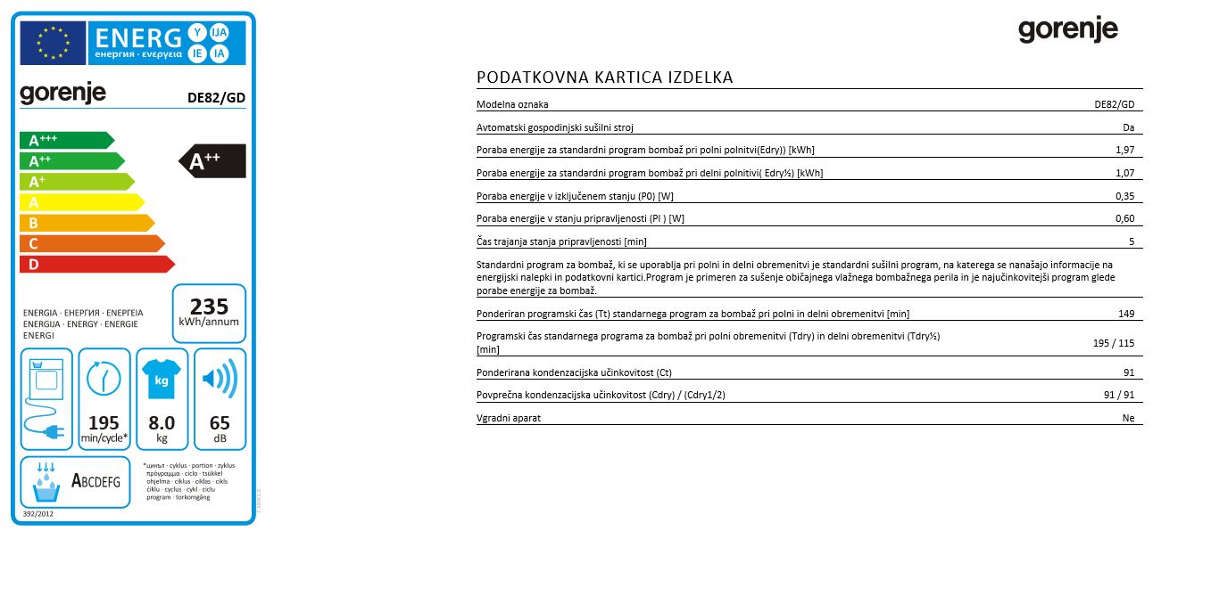 SUŠILNI STROJ GORENJE DE82/GD TOPLOTNA ČRPALKA