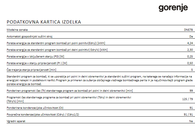 SUŠILNI STROJ GORENJE DNE7B