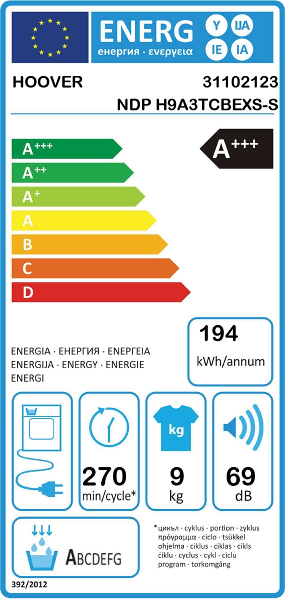 SUŠILNI STROJ HOOVER ND H9A3TCBEXS-S H-DRY