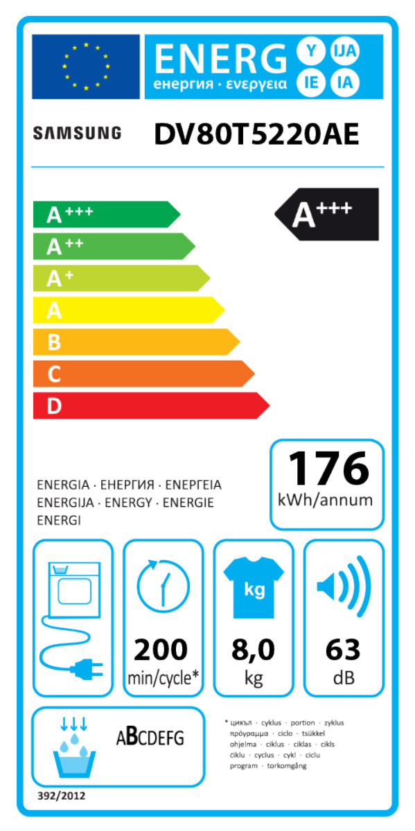 Sušilni stroj Samsung DV80T5220AE/S7 z zmogljivostjo sušenja 8 kg, inverter motor, toplotna črpalka, zamik vklopa, varovalno za otroke, hitri program 35 min (1kg).