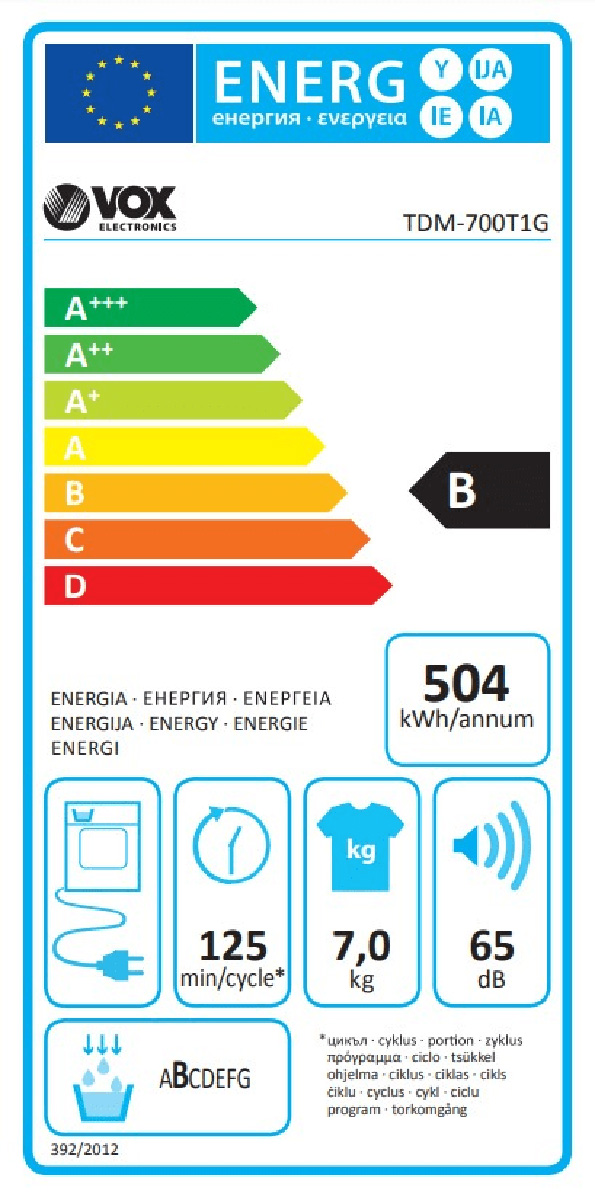 Kondenzacijski sušilni stroj TDM-700T1G se uvršča v energijski razred B (stari) in lahko posuši do 7 kg perila naenkrat.