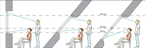 Pri strešnih oknih veljajo podobne zakonitosti kot pri vertikalnih oknih. Oboji morajo zagotavljati sedeči osebni vidni stik z okolico. Torej, ko sedite pred oknom vaš pogled ne sme biti moten z okvirjem. Spodnji rob okna naj bo vgrajen od 90 do 110 cm od tal. Za udobno odpiranje pa naj bo ročica pozicionirana med 190 in 210 cm od tal.