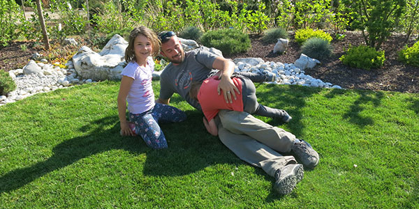 Vrtna zelenica je odličen prostor za družinsko igro. Nekatere trave v avgustu porumenijo, kar je odvisno predvsem od sestave travne mešanice, ki smo jo sejali. V avgustu gnojimo z gnojili, ki vsebujemo več kalija in manj dušika in fosforja. Izbiramo taka gnojila, ki vsebujejo še mikroelemente. V sušnem vremenu ne smemo gnojiti, razen v primeru, da imamo namakalni sistem.
