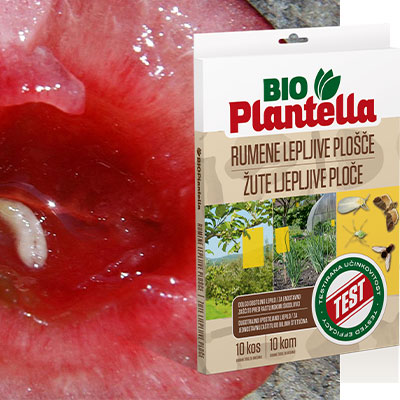 Za povsem naravno zaščito pred češnjevo, čebulno, porovo itd. muho uporabimo učinkovito mehansko zaščito pred škodljivci Bio Plantella Rumene lepljive plošče, ki jih namestimo nekaj centimetrov nad posevek in tako ujamemo škodljivca. Zelo pomembno je nastaviti rumene plošče tudi v rastlinjake, saj tako lovimo škodljive tripse in ščitkarje. Na sadnem drevju so pojavljajo različni škodljivi metulji, ki ležejo jajčeca na plodove, v katerih nato pri obiranju najdemo črvičke. Tu namestimo rumene lepljive plošče na obod krošnje.