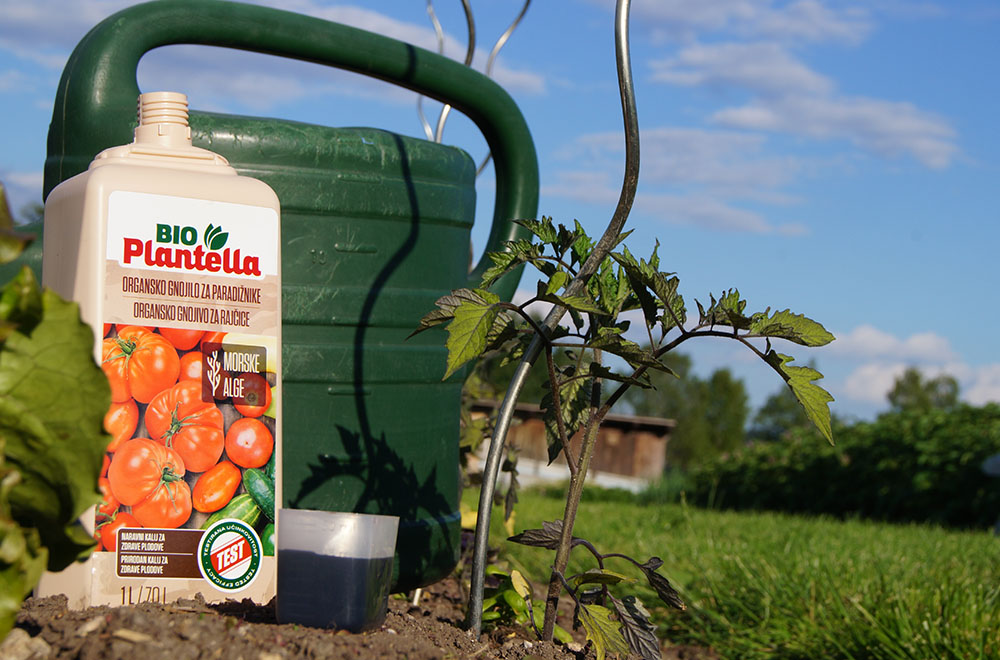 Za dognojevanje uporabimo tekoče organsko gnojilo Bio Plantella Organsko gnojilo za paradižnike iz morskih alg. Morske alge so zelo hranilne in vsebujejo veliko kalija.
