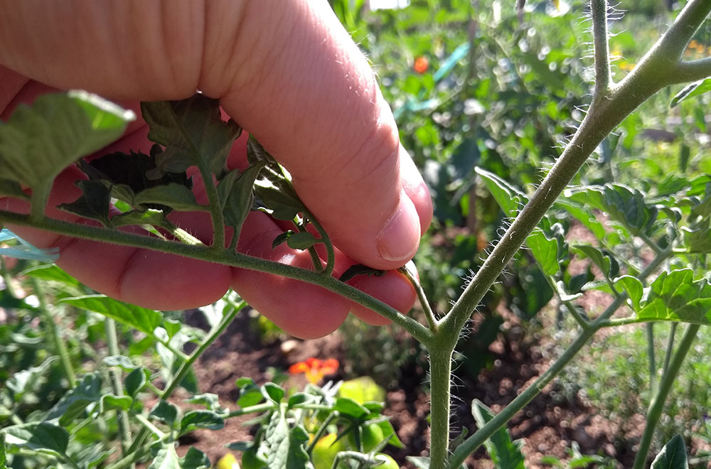 Na nižjih listih se hitreje pojavi bolezen, ki okuži celotno rastlino, zato jih redno odstranjujemo.