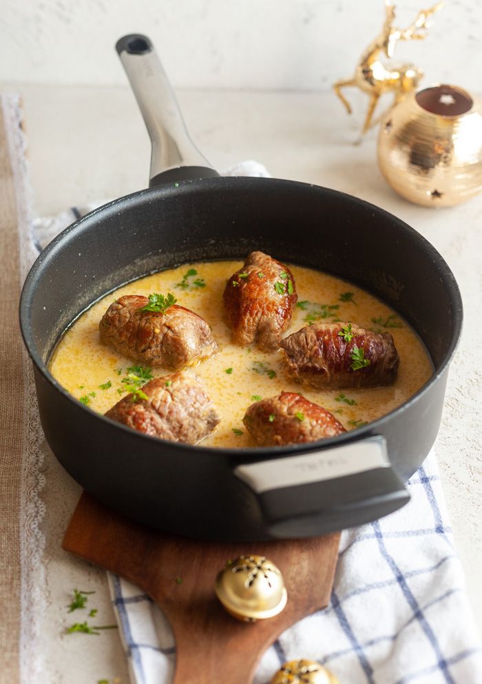 Jed združuje okuse v mehkem govejem mesu. Goveji ptički se kuhajo v aromatični osnovi, ki jo na koncu zgostimo s kremno omako. Idealno za nedeljsko kosilo ali praznično večerjo